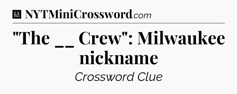 The clue “”The __ Crew”: Milwaukee nickname” most recently appeared in a LA Times Crossword on June 3, 2023.