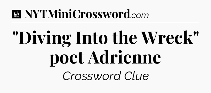 The clue “”Diving Into the Wreck” poet Adrienne” most recently appeared in a LA Times Crossword on June 30, 2022.