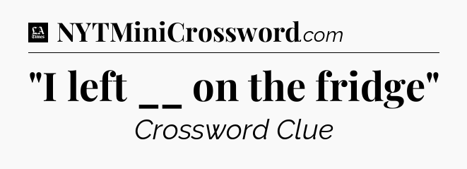 The clue “”I left __ on the fridge”” most recently appeared in a LA Times Crossword on June 4, 2019.
