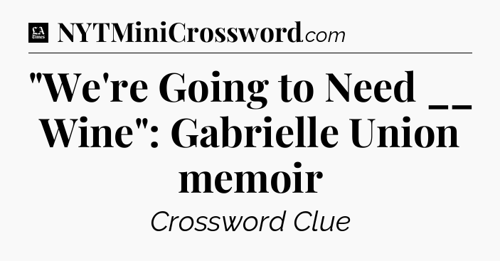 The clue “”We’re Going to Need __ Wine”: Gabrielle Union memoir” most recently appeared in a LA Times Crossword on June 4, 2022.