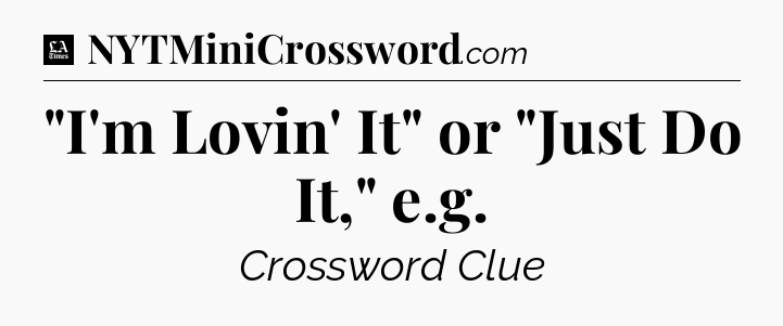 The clue “”I’m Lovin’ It” or “Just Do It,” e.g” most recently appeared in a LA Times Crossword on June 6, 2017.