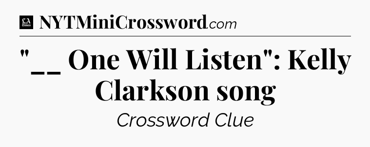 The clue “”__ One Will Listen”: Kelly Clarkson song” most recently appeared in a LA Times Crossword on June 7, 2018.