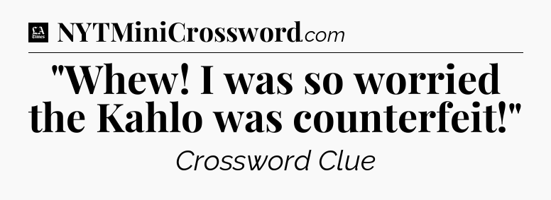 The clue “”Whew! I was so worried the Kahlo was counterfeit!”” most recently appeared in a LA Times Crossword on June 7, 2024.