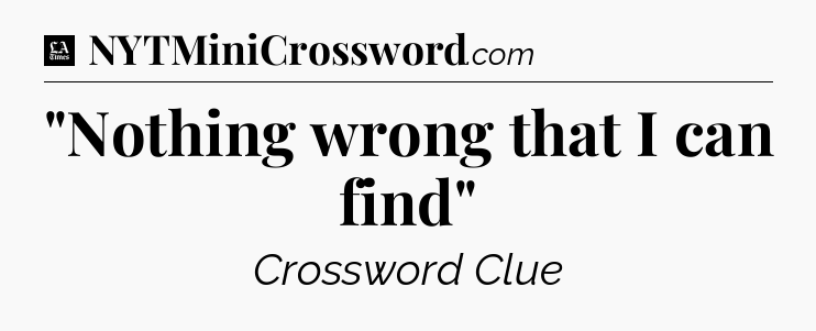 The clue “”Nothing wrong that I can find”” most recently appeared in a LA Times Crossword on June 8, 2018.
