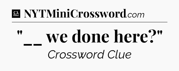 The clue “”__ we done here?”” most recently appeared in a LA Times Crossword on July 14, 2022.