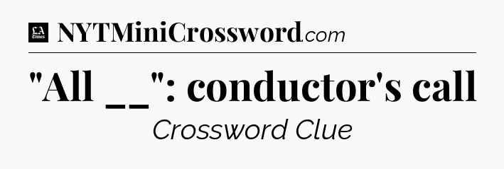 The clue “”All __”: conductor’s call” most recently appeared in a LA Times Crossword on July 14, 2025.