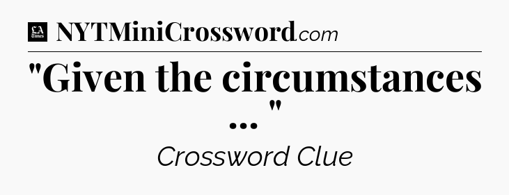 The clue “”Given the circumstances … “” most recently appeared in a LA Times Crossword on July 15, 2017.