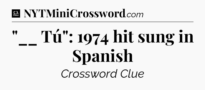 The clue “”__ Tú”: 1974 hit sung in Spanish” most recently appeared in a LA Times Crossword on July 17, 2019.