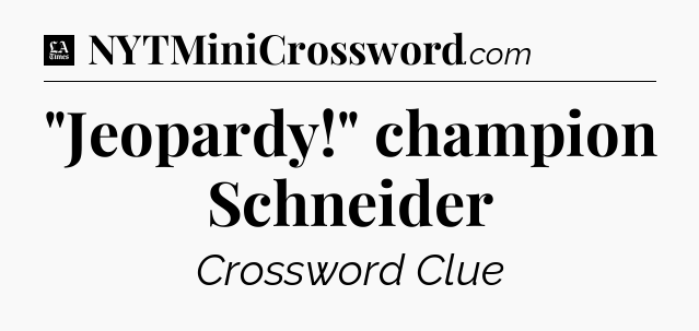The clue “”Jeopardy!” champion Schneider” most recently appeared in a LA Times Crossword on July 20, 2022.