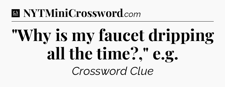 The clue “”Why is my faucet dripping all the time?,” e.g” most recently appeared in a LA Times Crossword on July 20, 2025.