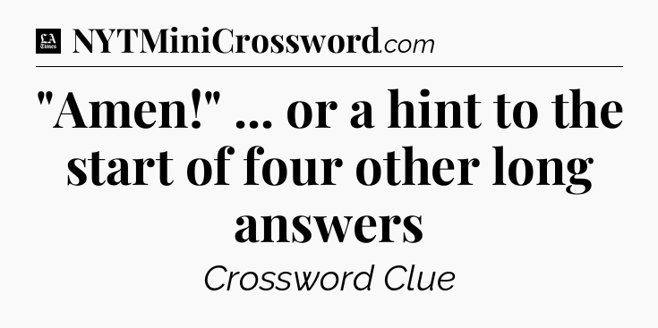 The clue “”Amen!” … or a hint to the start of four other long answers” most recently appeared in a LA Times Crossword on July 21, 2021.