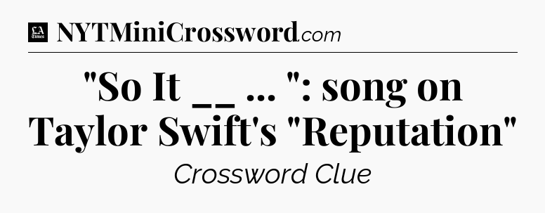 The clue “”So It __ … “: song on Taylor Swift’s “Reputation”” most recently appeared in a LA Times Crossword on July 21, 2023.