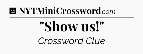 The clue “”Show us!”” most recently appeared in a LA Times Crossword on July 21, 2024.