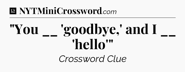The clue “”You __ ‘goodbye,’ and I __ ‘hello'”” most recently appeared in a LA Times Crossword on July 23, 2025.