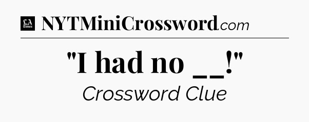 The clue “”I had no __!”” most recently appeared in a LA Times Crossword on July 24, 2023.