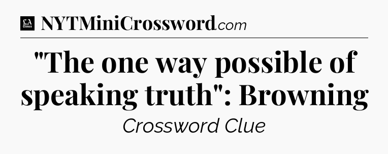 The clue “”The one way possible of speaking truth”: Browning” most recently appeared in a LA Times Crossword on July 25, 2020.