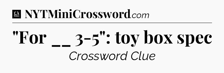 The clue “”For __ 3-5″: toy box spec” most recently appeared in a LA Times Crossword on July 29, 2019.