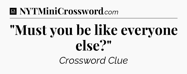 The clue “”Must you be like everyone else?”” most recently appeared in a LA Times Crossword on July 29, 2022.