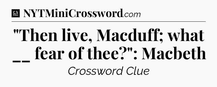 The Answer for “Then live, Macduff; what __ fear of thee?”: Macbeth – LA Times Crossword Clue Solution is: