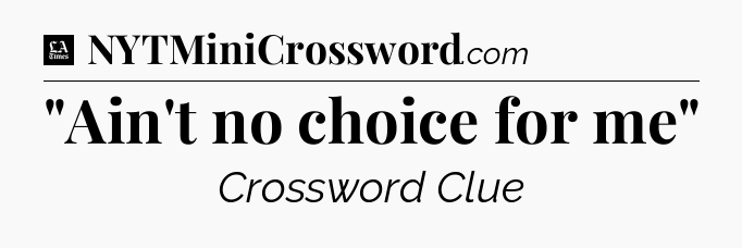 The clue “”Ain’t no choice for me”” most recently appeared in a LA Times Crossword on July 3, 2021.