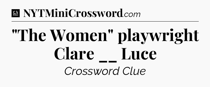 The clue “”The Women” playwright Clare __ Luce” most recently appeared in a LA Times Crossword on July 30, 2021.