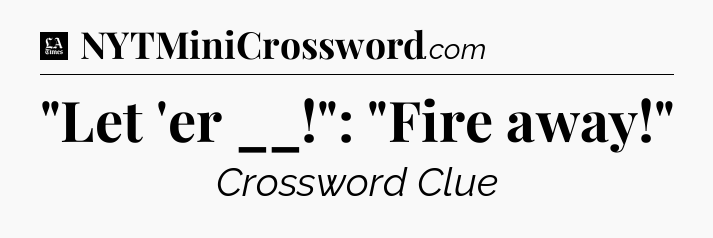The clue “”Let ‘er __!”: “Fire away!”” most recently appeared in a LA Times Crossword on July 4, 2017.