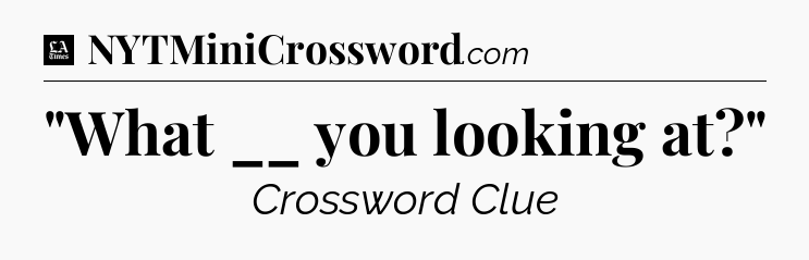 The clue “”What __ you looking at?”” most recently appeared in a LA Times Crossword on July 5, 2021.