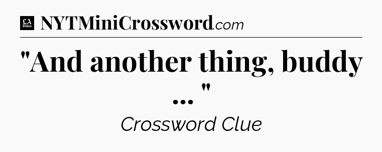 The clue “”And another thing, buddy … “” most recently appeared in a LA Times Crossword on July 6, 2019.