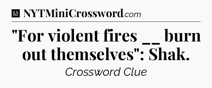 The clue “”For violent fires __ burn out themselves”: Shak” most recently appeared in a LA Times Crossword on July 6, 2019.