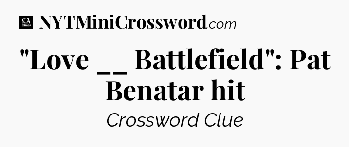 The clue “”Love __ Battlefield”: Pat Benatar hit” most recently appeared in a LA Times Crossword on July 8, 2018.