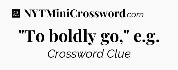 The clue “”To boldly go,” e.g” most recently appeared in a LA Times Crossword on August 1, 2018.