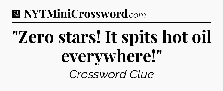 The clue “”Zero stars! It spits hot oil everywhere!”” most recently appeared in a LA Times Crossword on August 10, 2023.