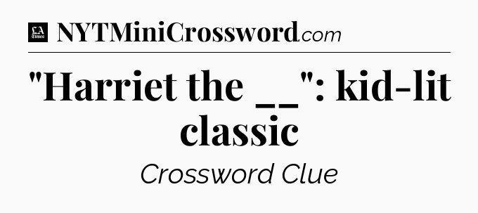 The clue “”Harriet the __”: kid-lit classic” most recently appeared in a LA Times Crossword on August 10, 2025.