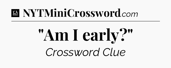 The clue “”Am I early?”” most recently appeared in a LA Times Crossword on August 11, 2018.
