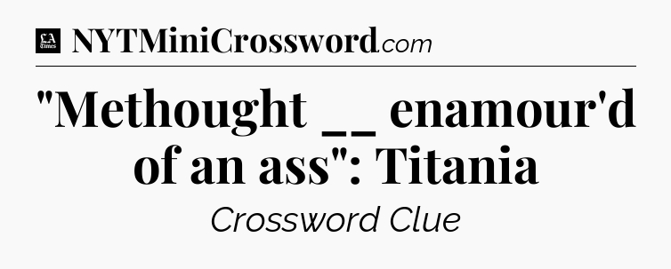 The Answer for “Methought __ enamour’d of an ass”: Titania – LA Times Crossword Clue Solution is: