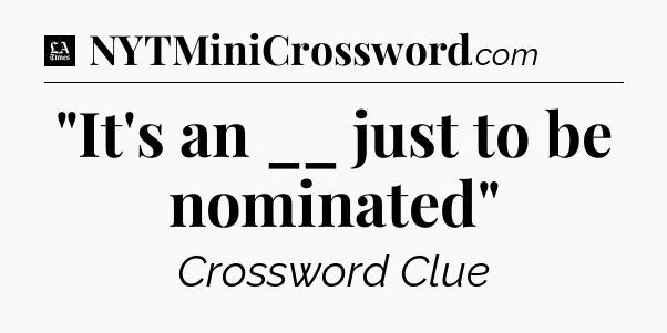 The clue “”It’s an __ just to be nominated”” most recently appeared in a LA Times Crossword on August 14, 2023.