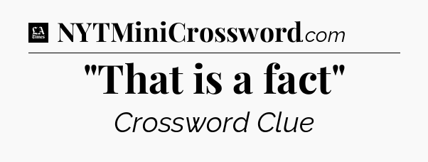 The clue “”That is a fact”” most recently appeared in a LA Times Crossword on August 15, 2022.