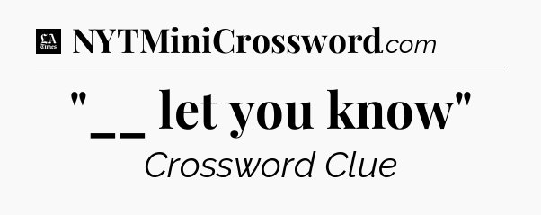 The clue “”__ let you know”” most recently appeared in a LA Times Crossword on August 18, 2020.