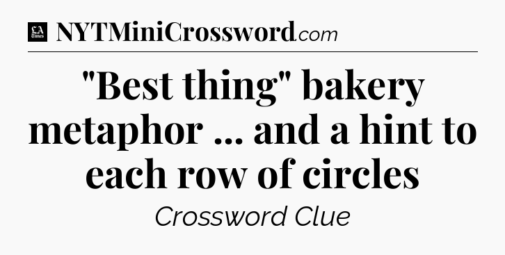 The clue “”Best thing” bakery metaphor … and a hint to each row of circles” most recently appeared in a LA Times Crossword on August 19, 2019.
