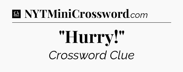 The clue “”Hurry!”” most recently appeared in a LA Times Crossword on August 20, 2019.