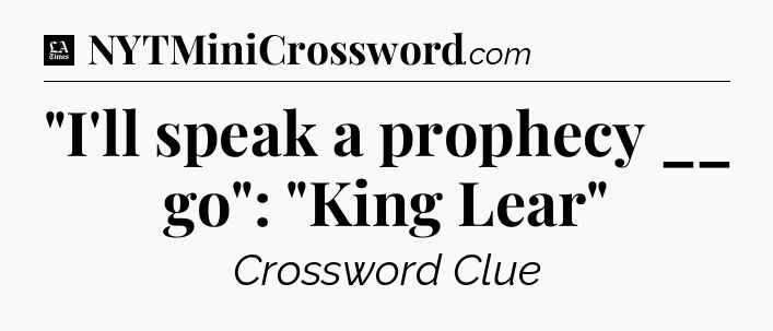 The clue “”I’ll speak a prophecy __ go”: “King Lear”” most recently appeared in a LA Times Crossword on August 20, 2021.