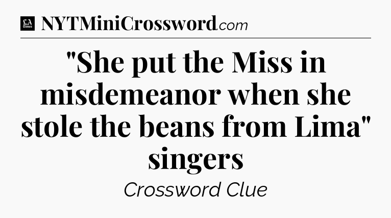 The clue “”She put the Miss in misdemeanor when she stole the beans from Lima” singers” most recently appeared in a LA Times Crossword on August 20, 2022.