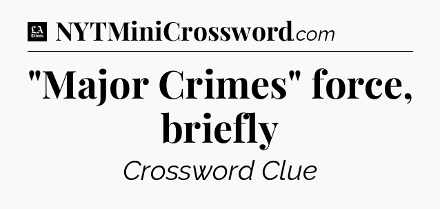 The clue “”Major Crimes” force, briefly” most recently appeared in a LA Times Crossword on August 21, 2020.