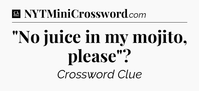 The clue “”No juice in my mojito, please”” most recently appeared in a LA Times Crossword on August 23, 2020.