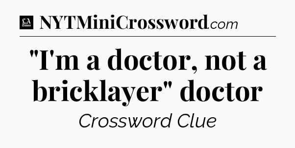 The clue “”I’m a doctor, not a bricklayer” doctor” most recently appeared in a LA Times Crossword on August 24, 2019.
