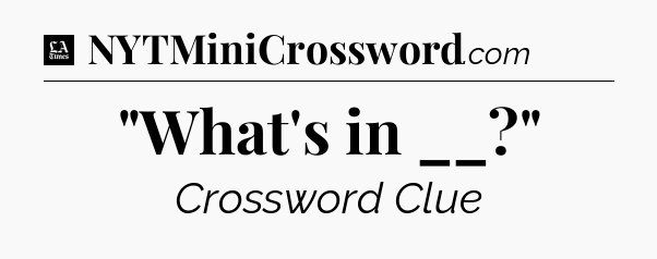 The clue “”What’s in __?”” most recently appeared in a LA Times Crossword on August 26, 2021.