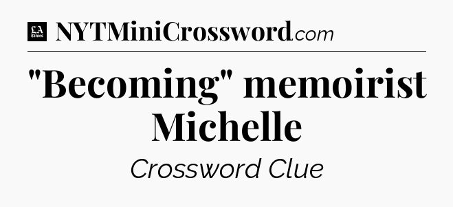 The clue “”Becoming” memoirist Michelle” most recently appeared in a LA Times Crossword on August 28, 2019.