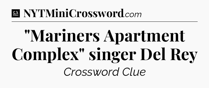 The clue “”Mariners Apartment Complex” singer Del Rey” most recently appeared in a LA Times Crossword on August 28, 2023.