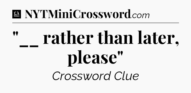 The Answer for “__ rather than later, please” – LA Times Crossword Clue Solution is: