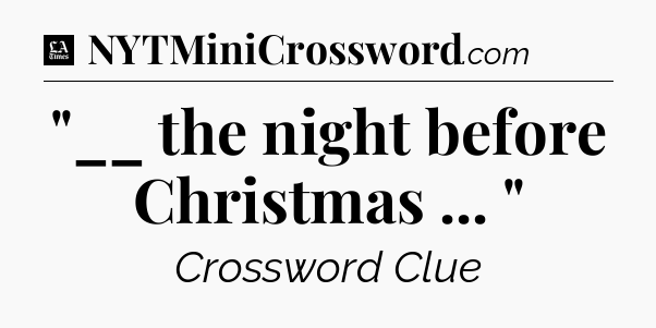 The clue “”__ the night before Christmas … “” most recently appeared in a LA Times Crossword on August 29, 2022.